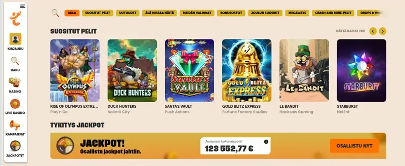 Coolbet on tunnettu ja luotettava toimija, joka tarjoaa sekä kasinopelejä että urheiluvedonlyöntiä. Vaikka se ei ole puhdas kasino ilman rekisteröitymistä, se tarjoaa erittäin nopean perinteisen rekisteröitymisprosessin ja tukee pikapelaamista. Coolbet on suosittu niiden keskuudessa, jotka arvostavat luotettavuutta ja monipuolisuutta. Sen Viron EMTA-lisenssi takaa verovapaat voitot suomalaisille pelaajille.